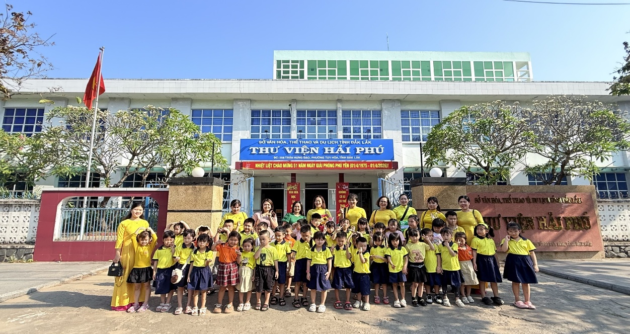 Hôm nay trường mầm non Họa Mi đã có buổi tham quan tại thư viện Hải Phú, giúp cho trẻ khám phá thư viện, biết vai trò của sách và hình thành thói quen đọc sách; – Rèn luyện cho trẻ kỹ năng giao tiếp, làm việc nhóm và tuân thủ quy định khi tham gia hoạt động tập thể; – Khuyến khích trẻ tò mò, ham học hỏi, phát triển tư duy và trí tưởng tượng.