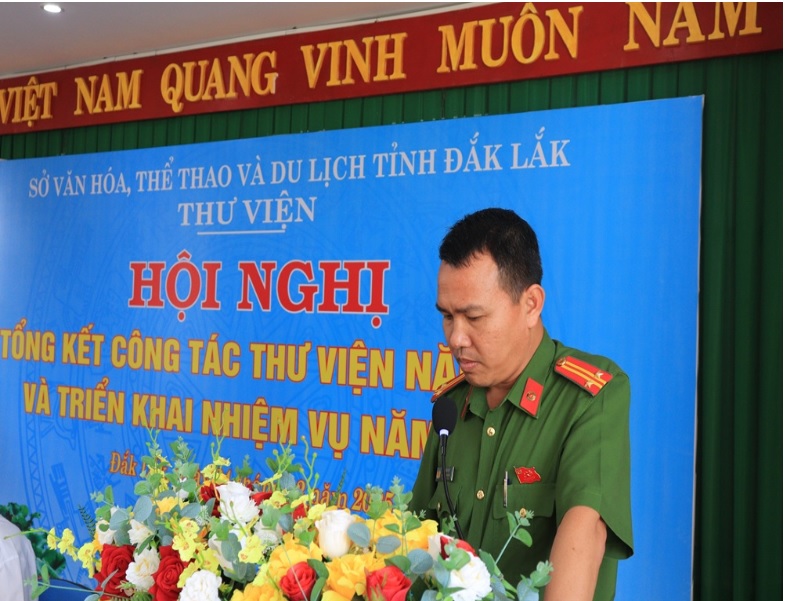 Phát biểu tại Hội nghị, Trung tá Vũ Văn Thụy, Phó Đội trưởng Trại giam Đắk Trung nhấn mạnh hiệu quả phối hợp giữa Thư viện tỉnh và đơn vị trong công tác phục vụ sách báo, góp phần nâng cao đời sống tinh thần cho phạm nhân, đồng thời mong muốn tiếp tục tăng cường phối hợp trong thời gian tới.