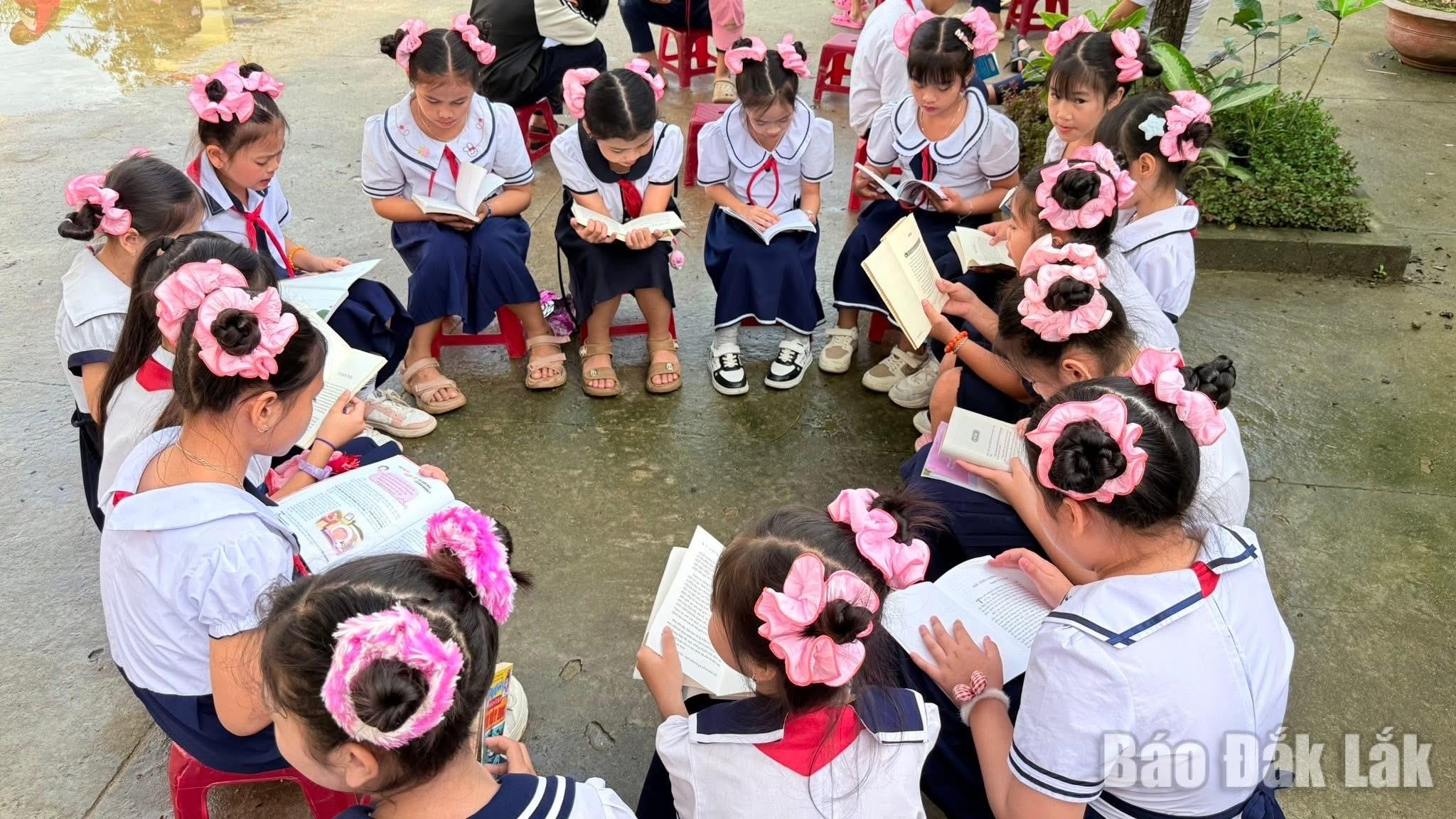 Tại Trường Tiểu học Hòa Thắng 1 (xã Phú Hòa 1), chương trình cũng nhận được sự hưởng ứng nhiệt tình. Hàng trăm học sinh hào hứng tham gia các hoạt động như giới thiệu sách mới, đố vui kiến thức, hướng dẫn kỹ năng đọc hiệu quả và chia sẻ cảm nhận sau khi đọc. Em Phạm Ánh Tuyết, học sinh lớp 5A, bày tỏ: “Em sẽ cố gắng đọc nhiều sách hơn để biết thêm nhiều điều hay”.